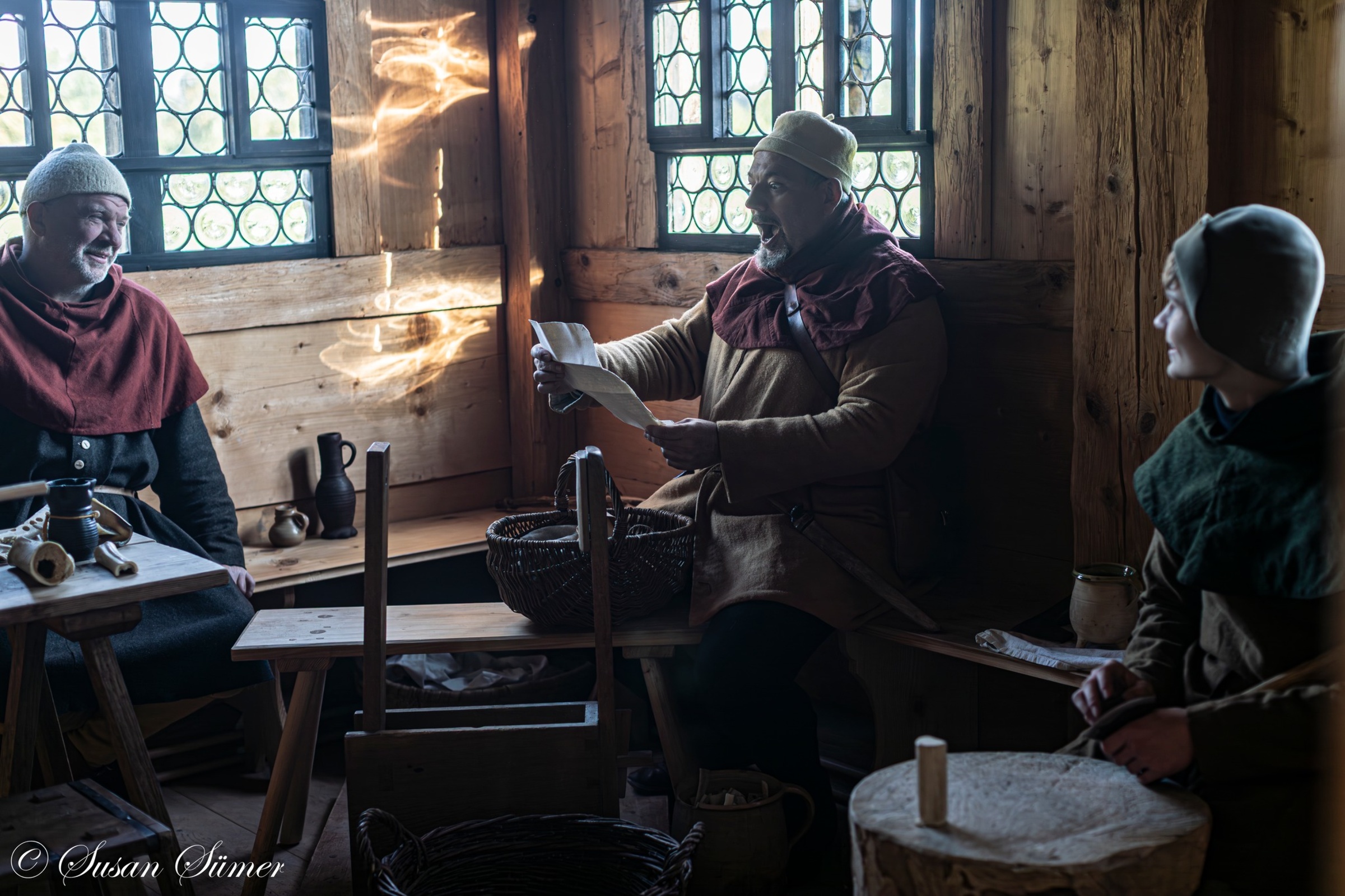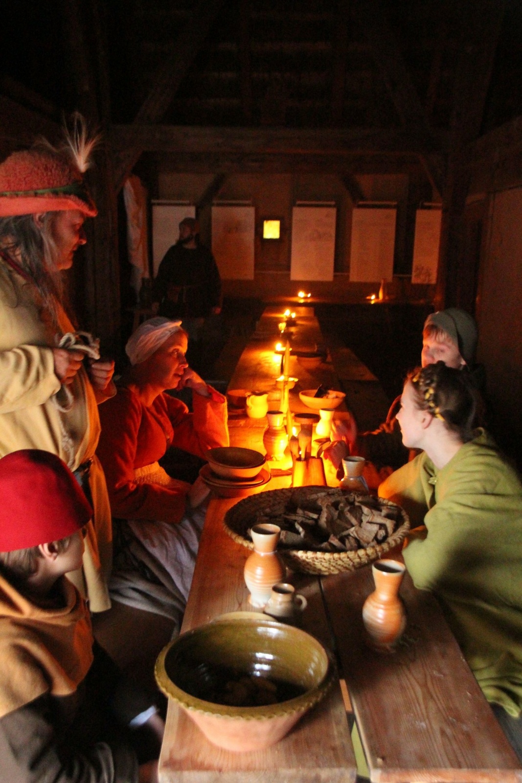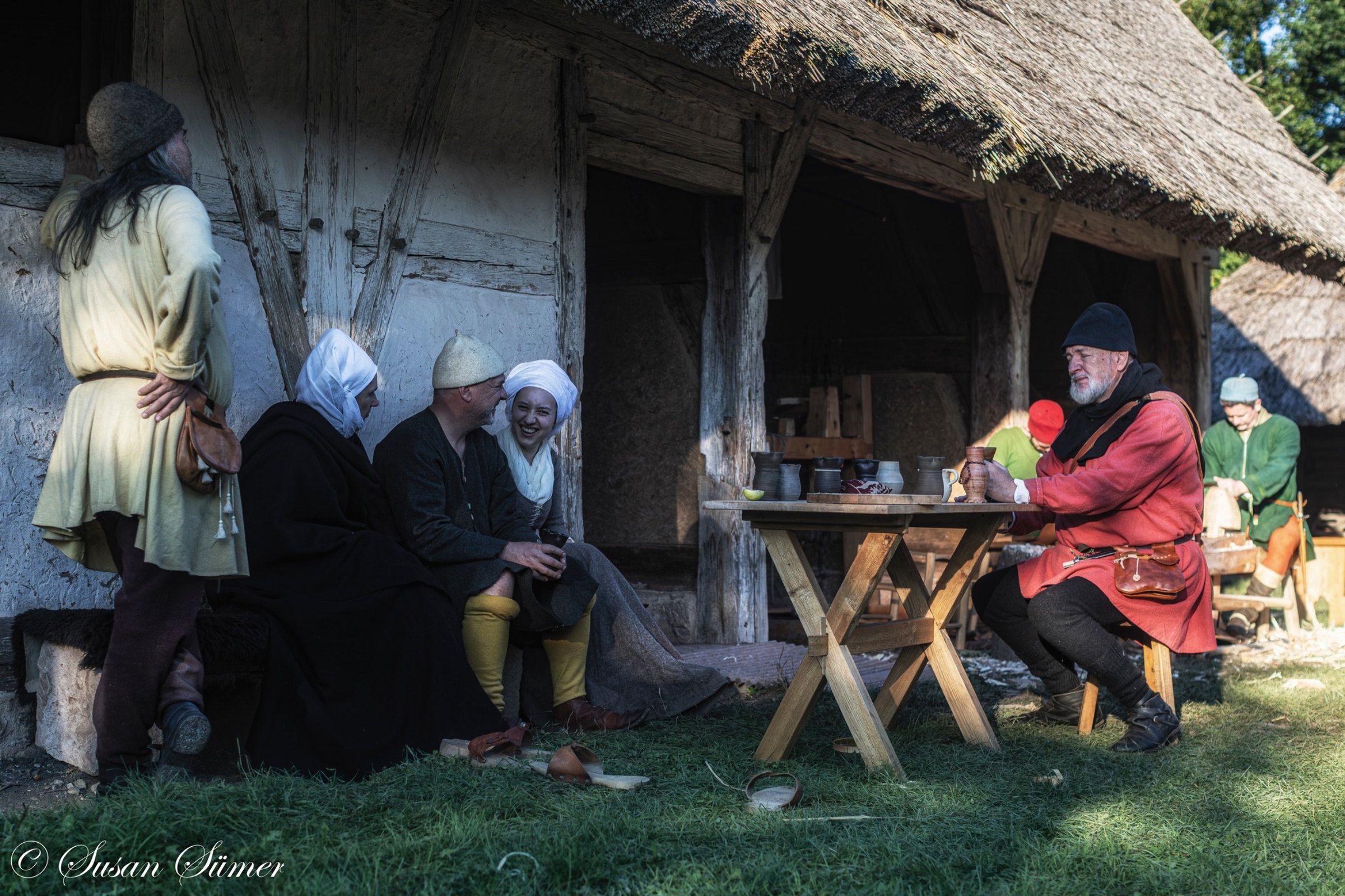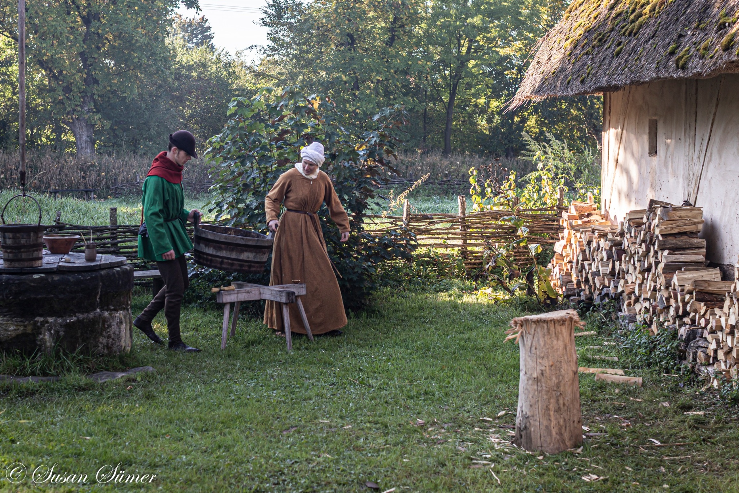 Obwohl wir so oft hier sind, ist das Wohnen in den Mittelalterhäusern des Museums noch immer etwas ganz Besonderes. Wir können die dargestellte Zeit wirklich erleben, denn alles drum herum ist stimmig. Die Erlaubnis, die Häuser wirklich zu benutzen und diese Möglichkeit zur Immersion, die uns das Museum gestattet, das ist die eigentliche "Bezahlung" für den ganzen Aufwand, den wir dafür so betreiben müssen (z.B. Anreise mit drei Pferden und zwei Karren mittels zwei Zugfahrzeugen/Anhängern; gefühlter Umzug einer Zweizimmerwohnung für eine Woche Aufenthalt, usw.)
