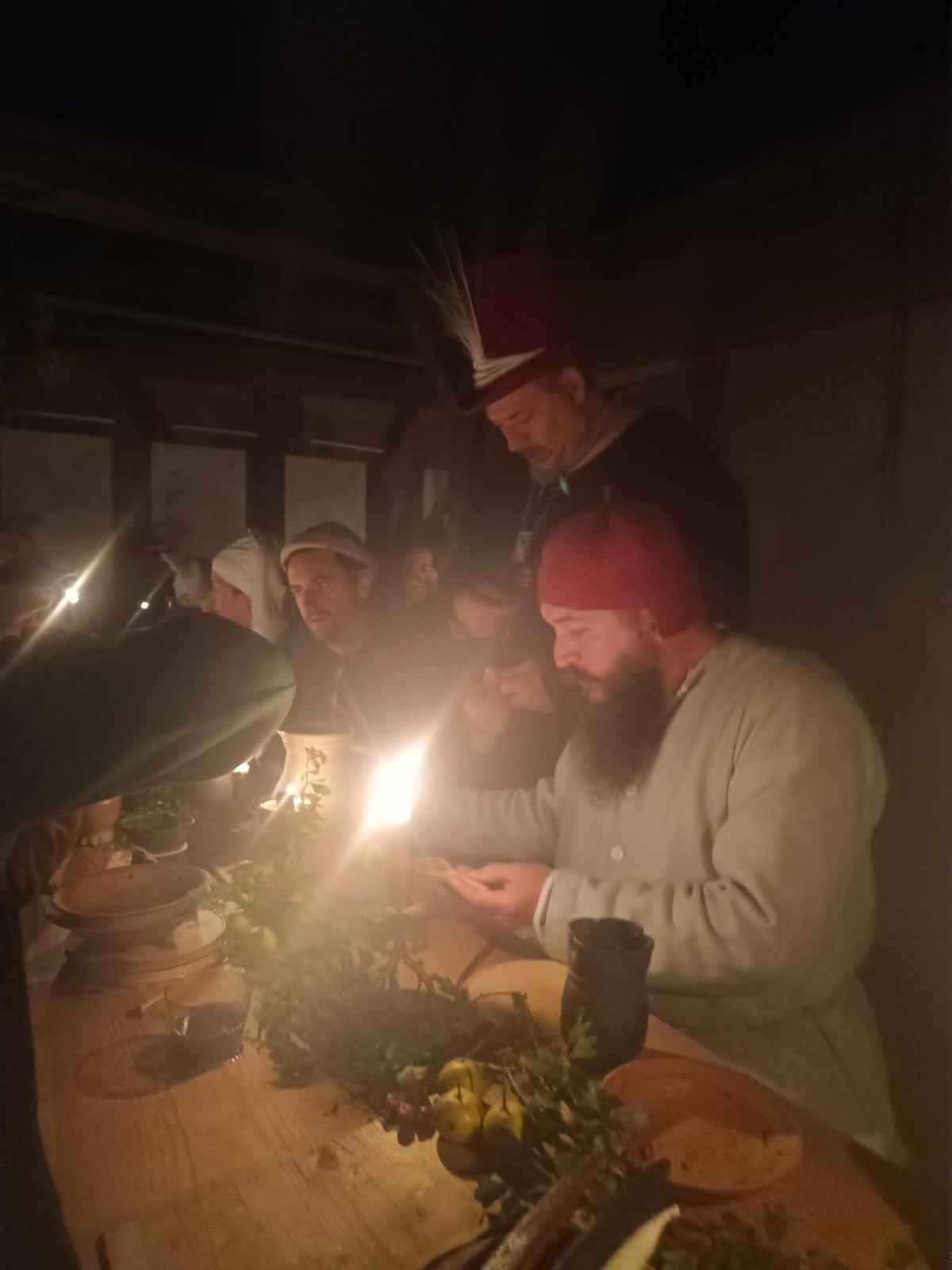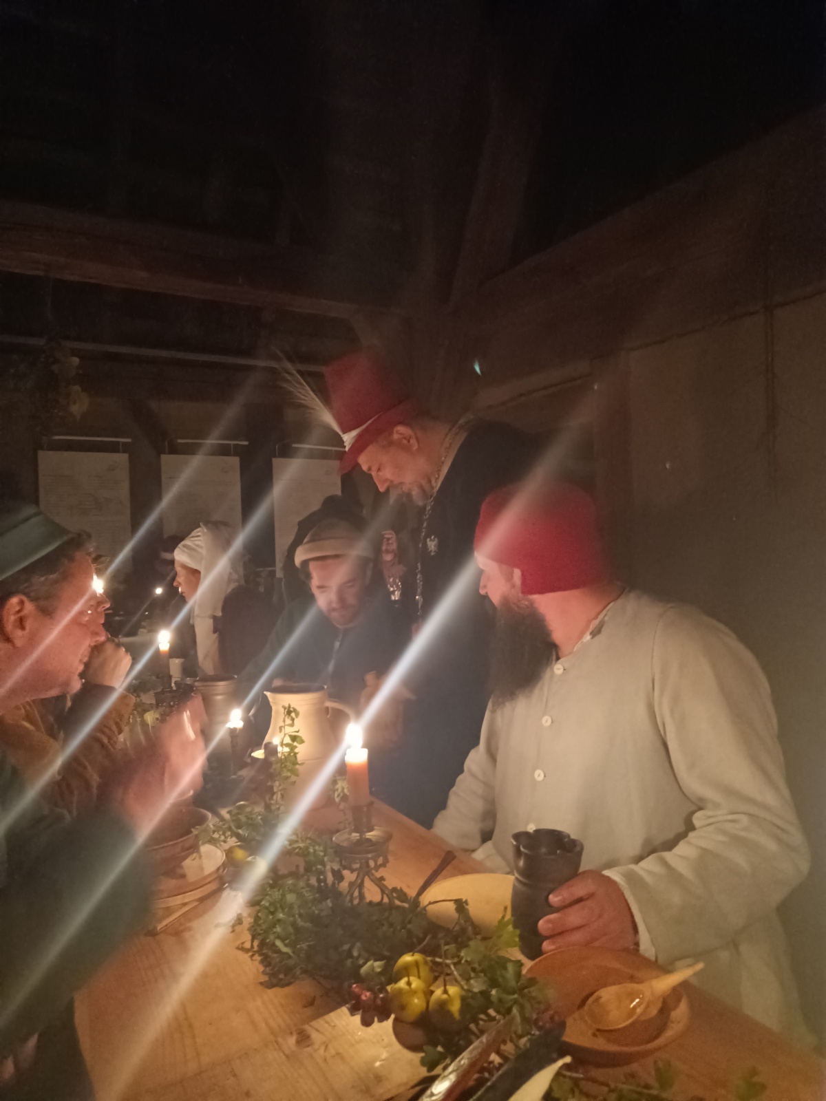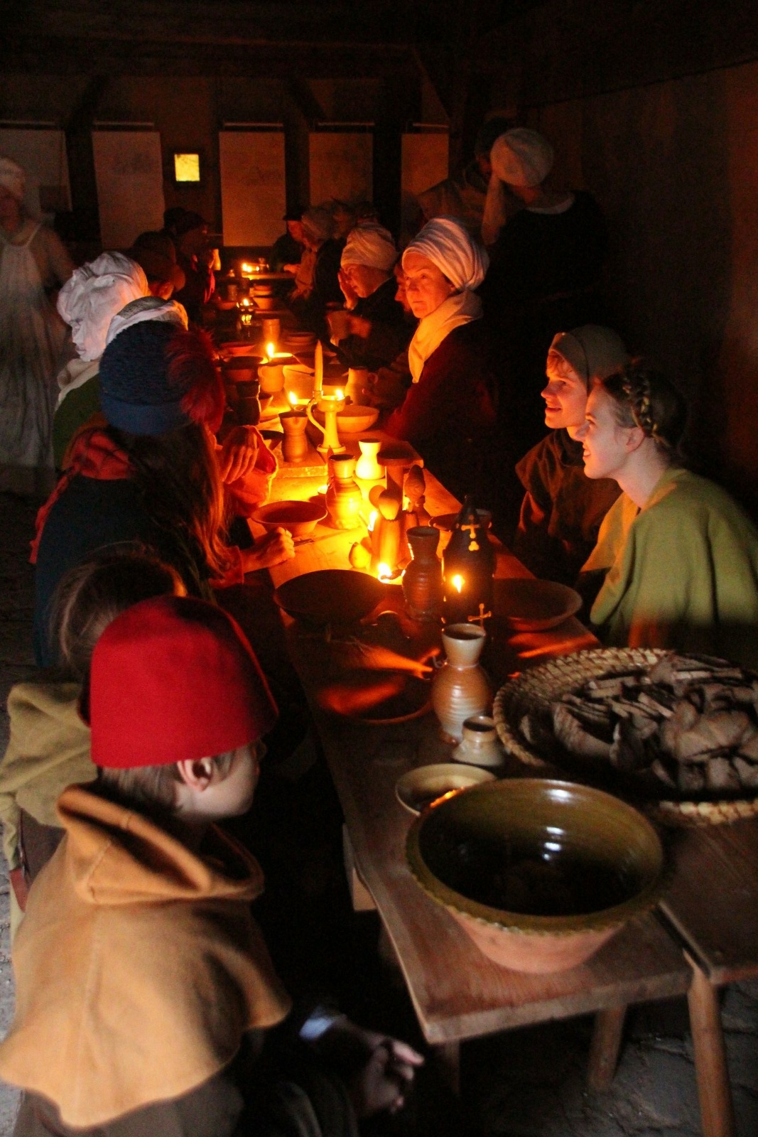 Obwohl wir so oft hier sind, ist das Wohnen in den Mittelalterhäusern des Museums noch immer etwas ganz Besonderes. Wir können die dargestellte Zeit wirklich erleben, denn alles drum herum ist stimmig. Die Erlaubnis, die Häuser wirklich zu benutzen und diese Möglichkeit zur Immersion, die uns das Museum gestattet, das ist die eigentliche "Bezahlung" für den ganzen Aufwand, den wir dafür so betreiben müssen (z.B. Anreise mit drei Pferden und zwei Karren mittels zwei Zugfahrzeugen/Anhängern; gefühlter Umzug einer Zweizimmerwohnung für eine Woche Aufenthalt, usw.)