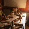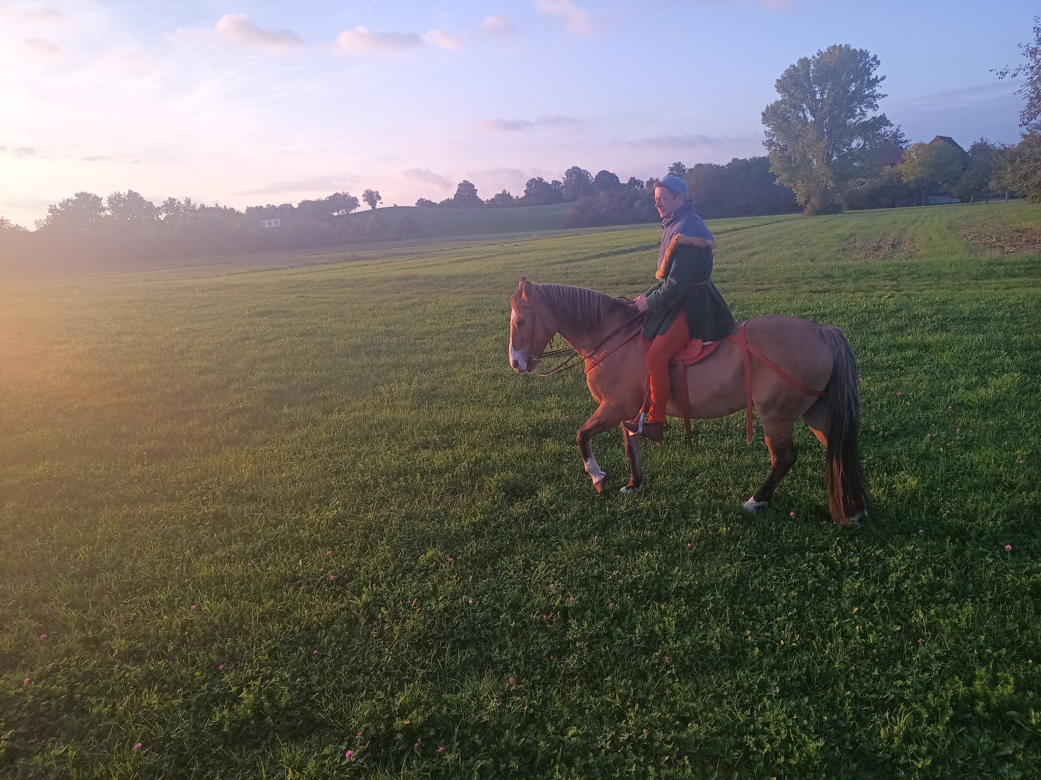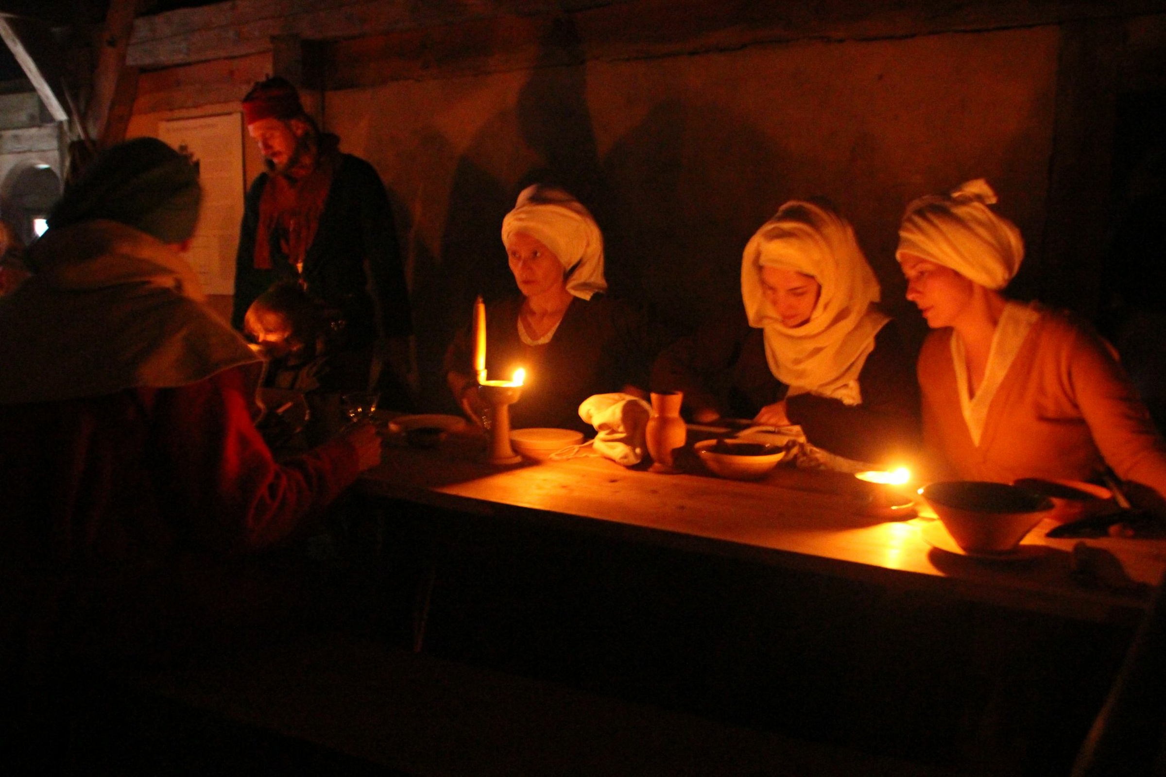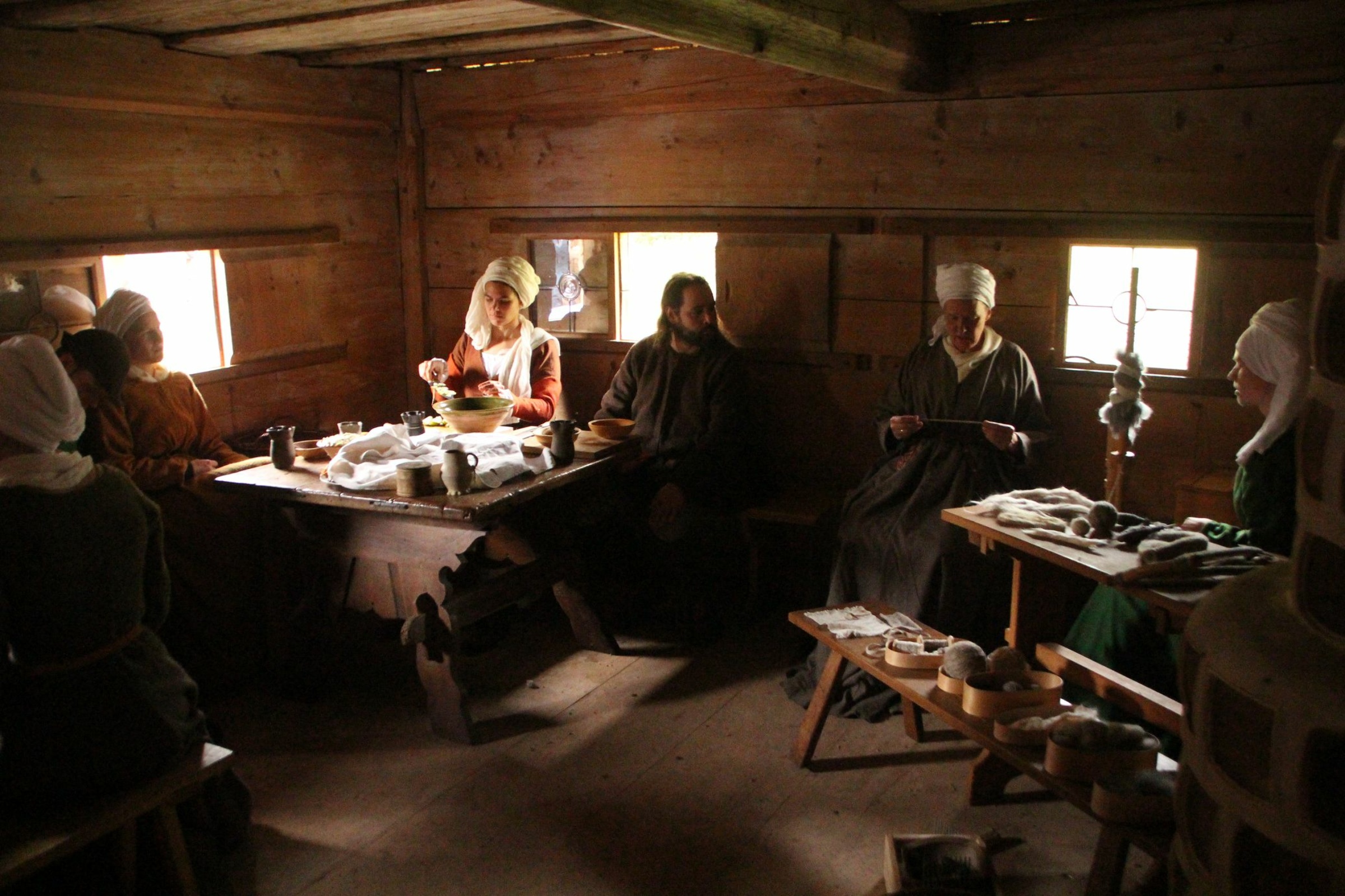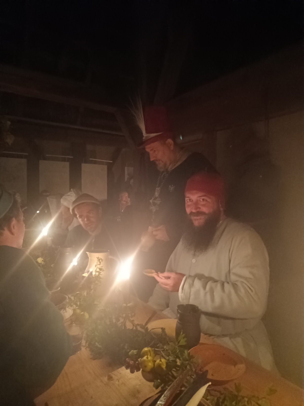 Obwohl wir so oft hier sind, ist das Wohnen in den Mittelalterhäusern des Museums noch immer etwas ganz Besonderes. Wir können die dargestellte Zeit wirklich erleben, denn alles drum herum ist stimmig. Die Erlaubnis, die Häuser wirklich zu benutzen und diese Möglichkeit zur Immersion, die uns das Museum gestattet, das ist die eigentliche "Bezahlung" für den ganzen Aufwand, den wir dafür so betreiben müssen (z.B. Anreise mit drei Pferden und zwei Karren mittels zwei Zugfahrzeugen/Anhängern; gefühlter Umzug einer Zweizimmerwohnung für eine Woche Aufenthalt, usw.)