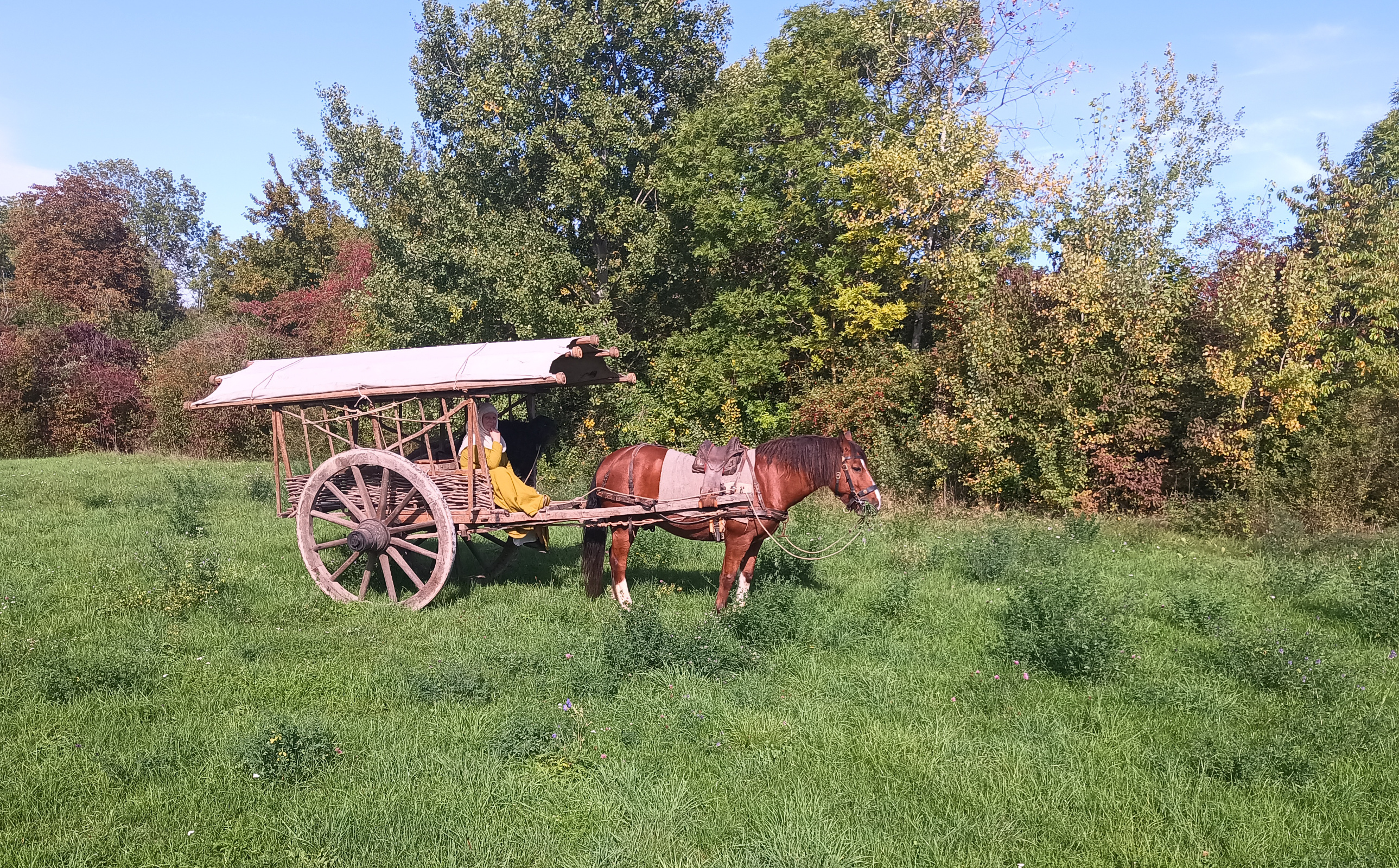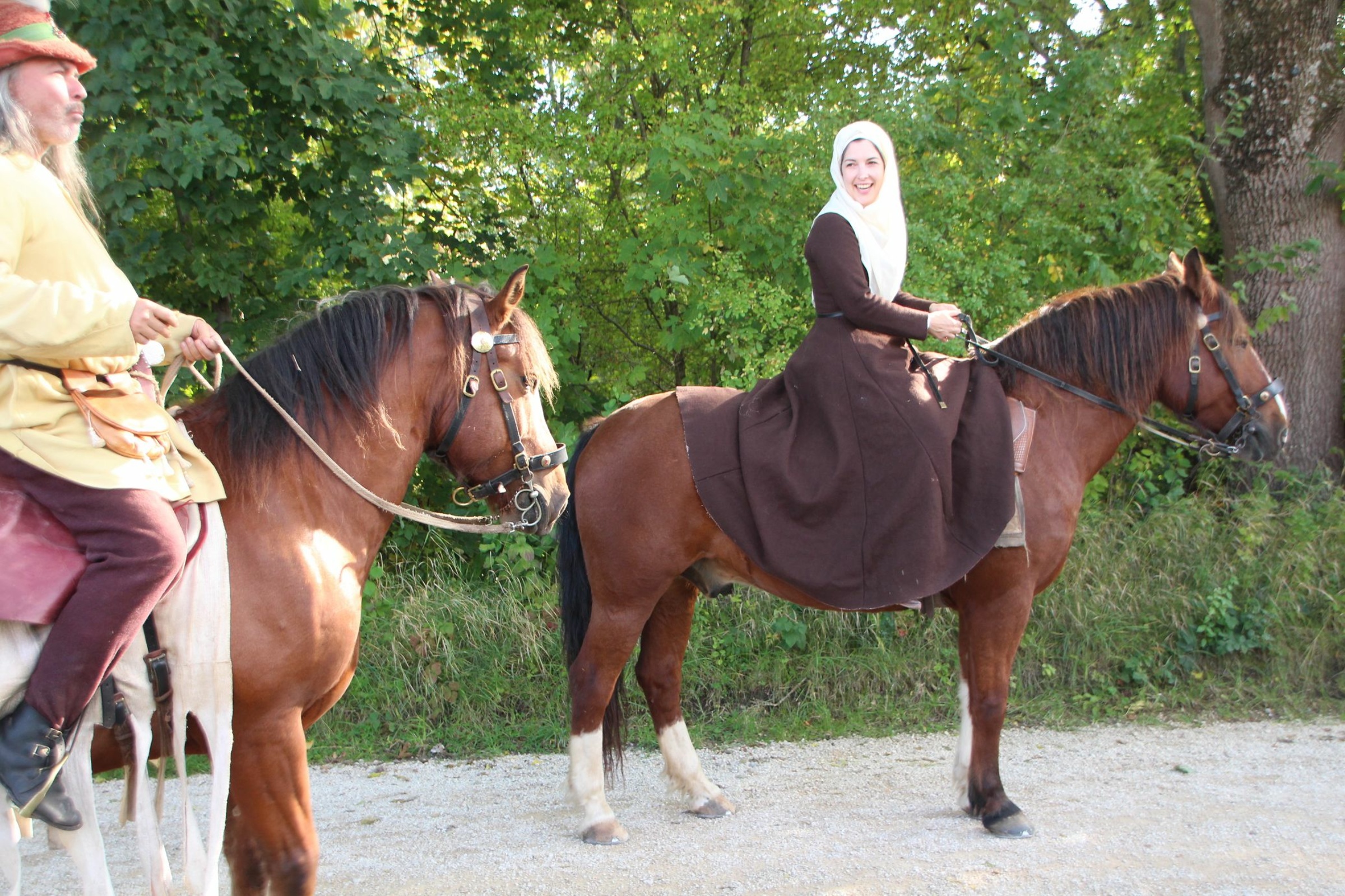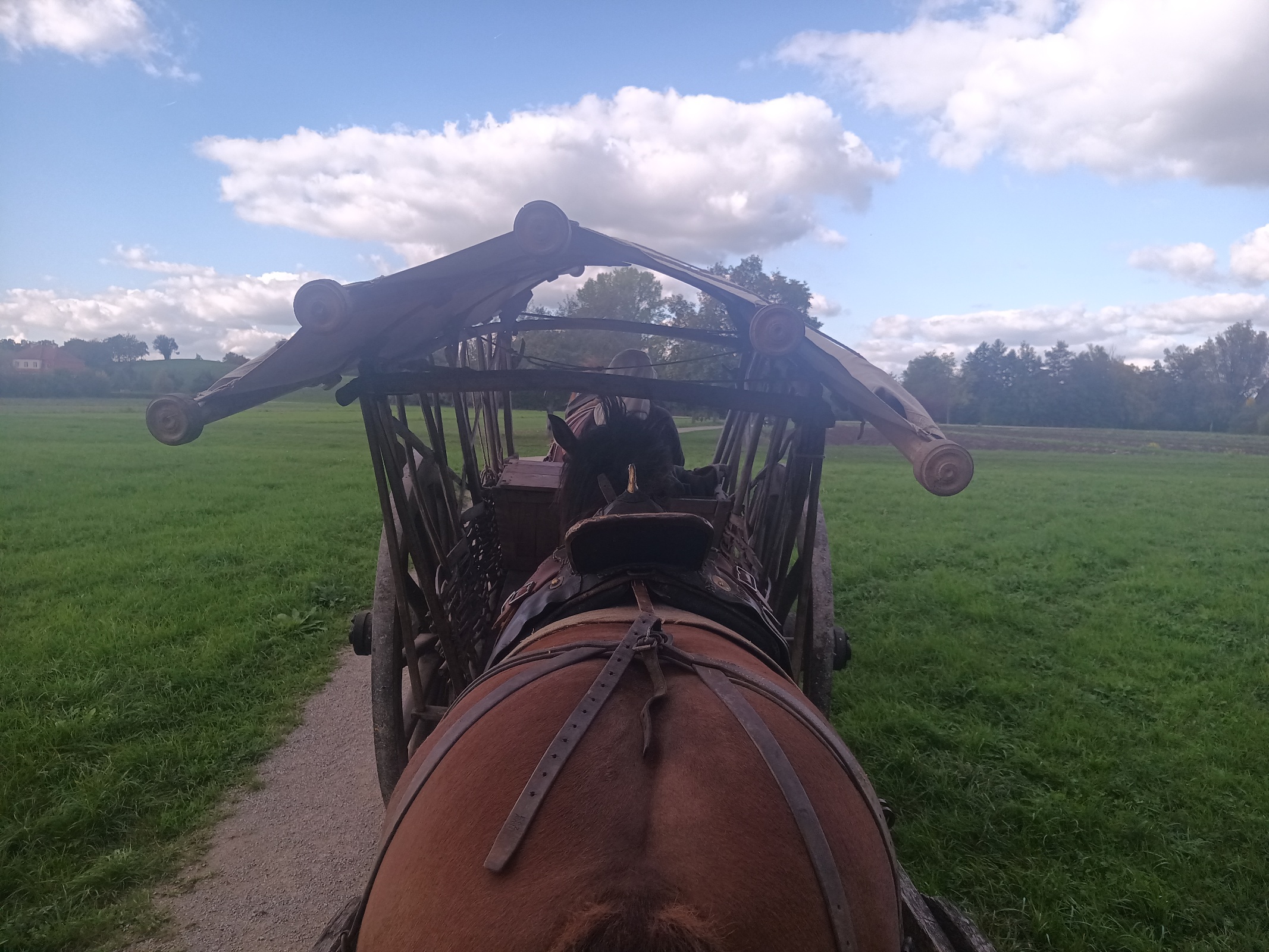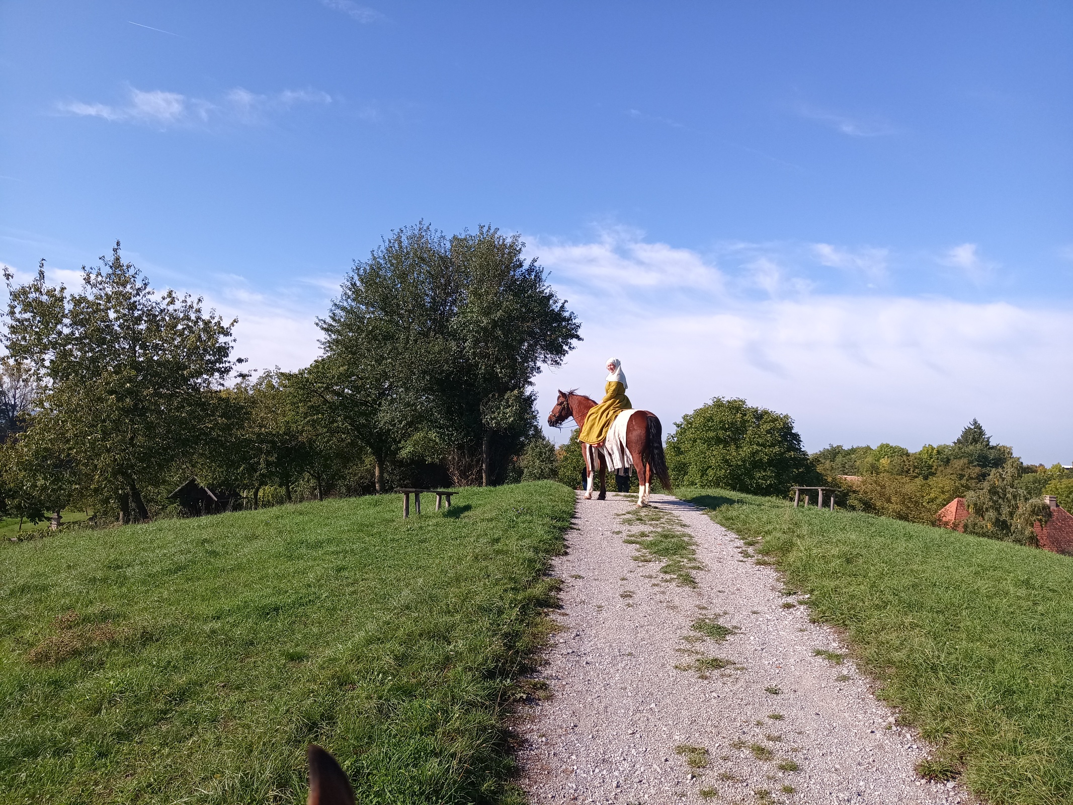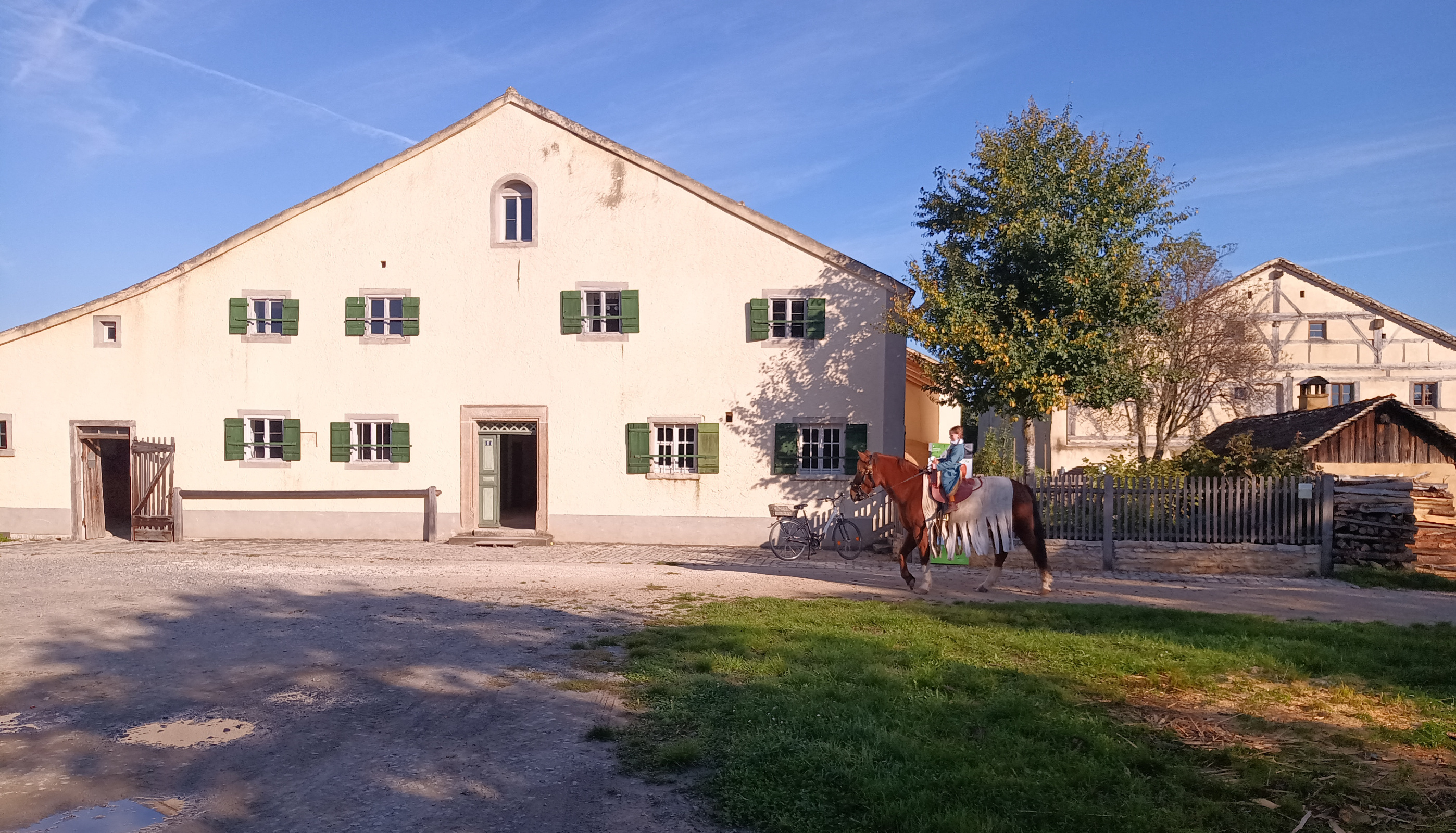 Das weitläufige Freilandmuseum bietet uns ein abwechslungsreiches Gelände, um mit den Pferden zu "spielen".