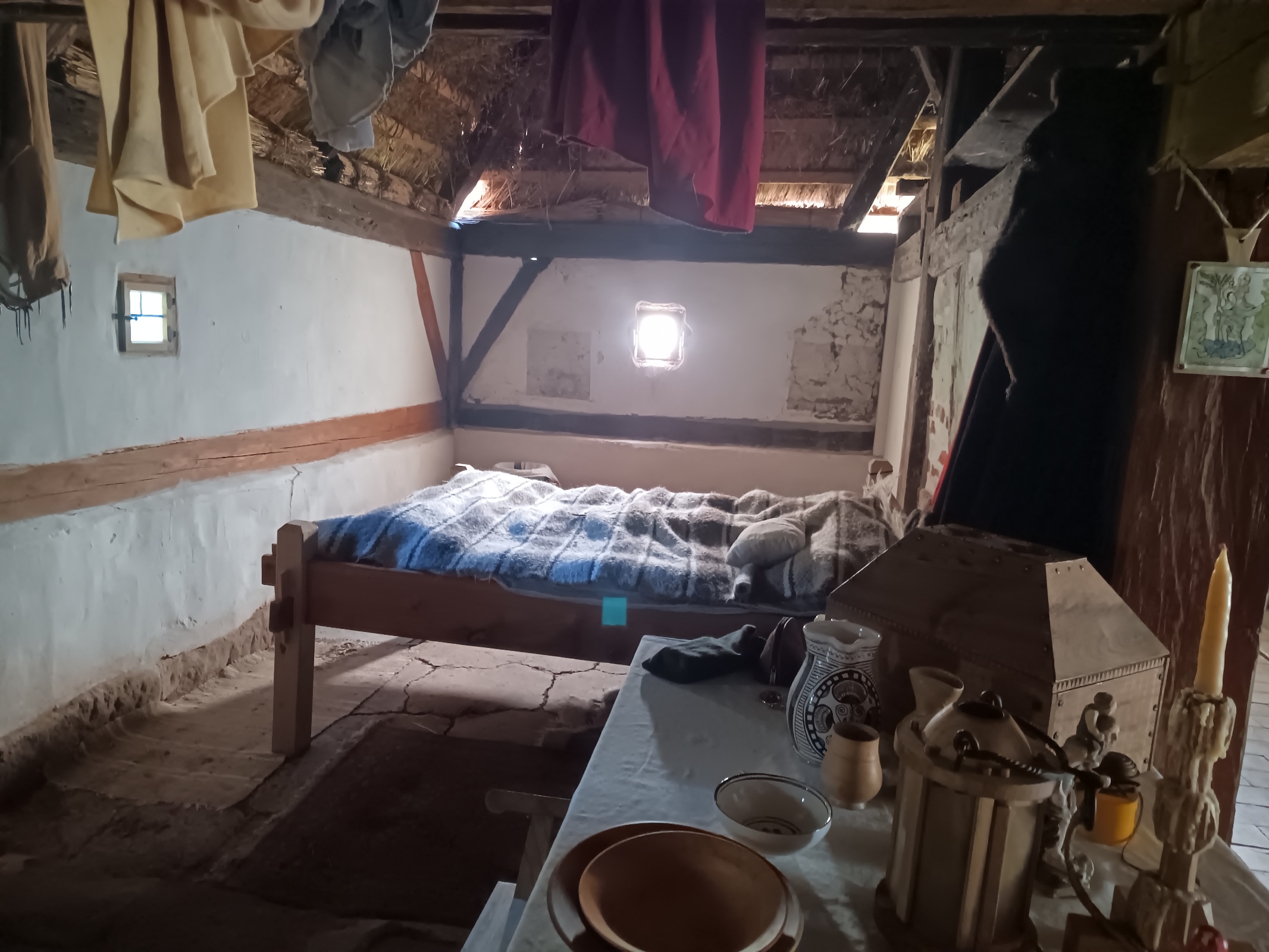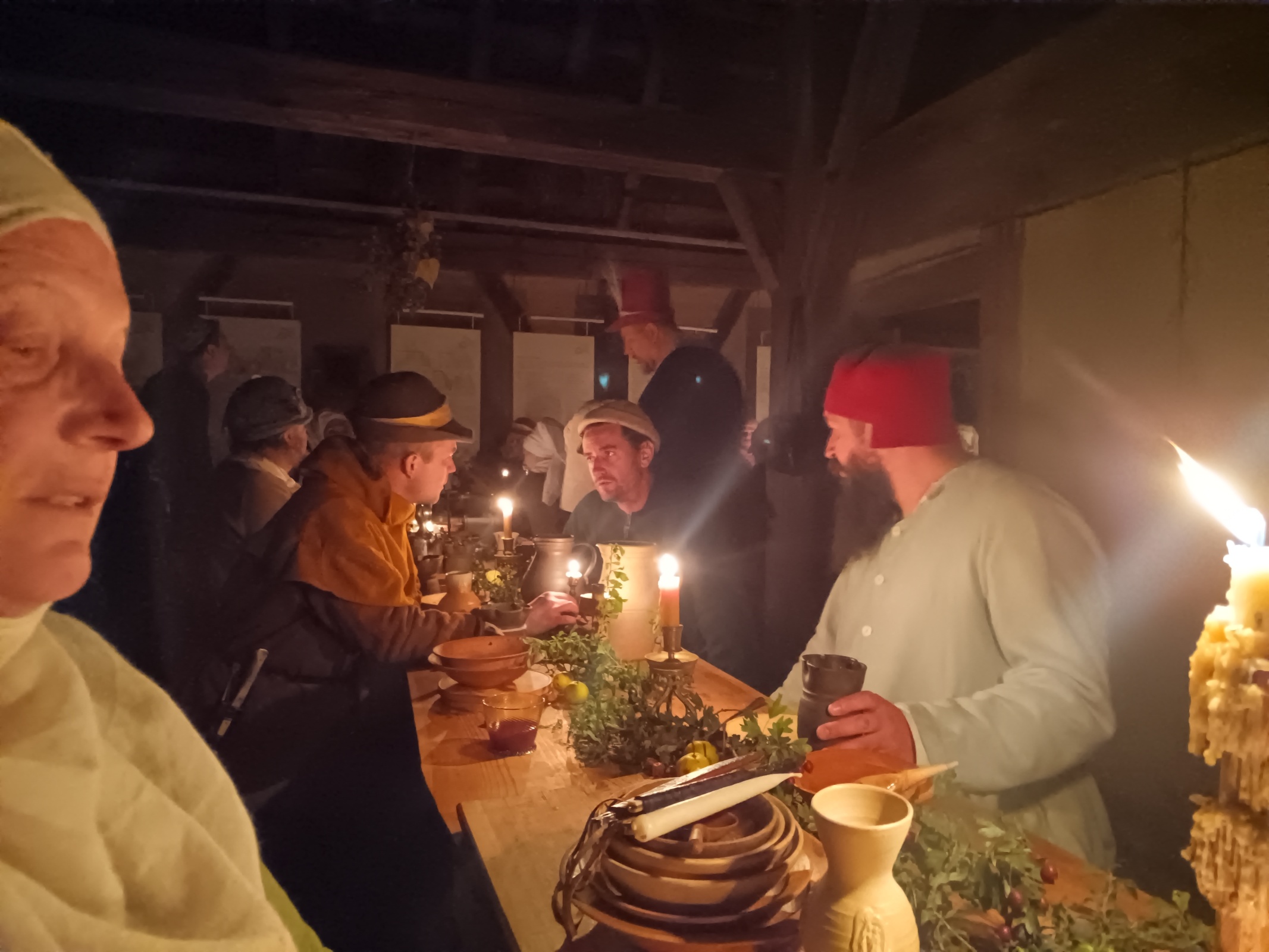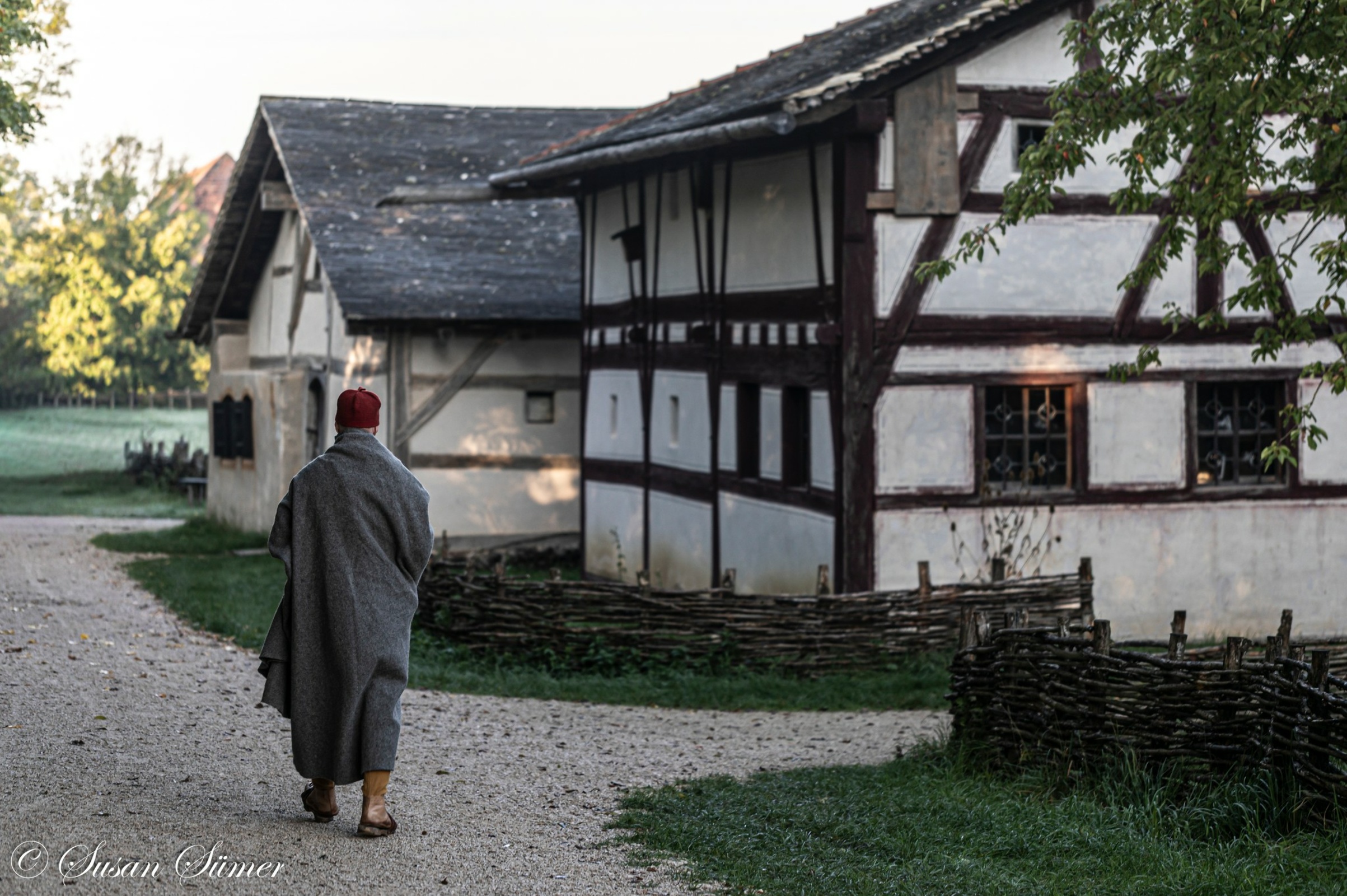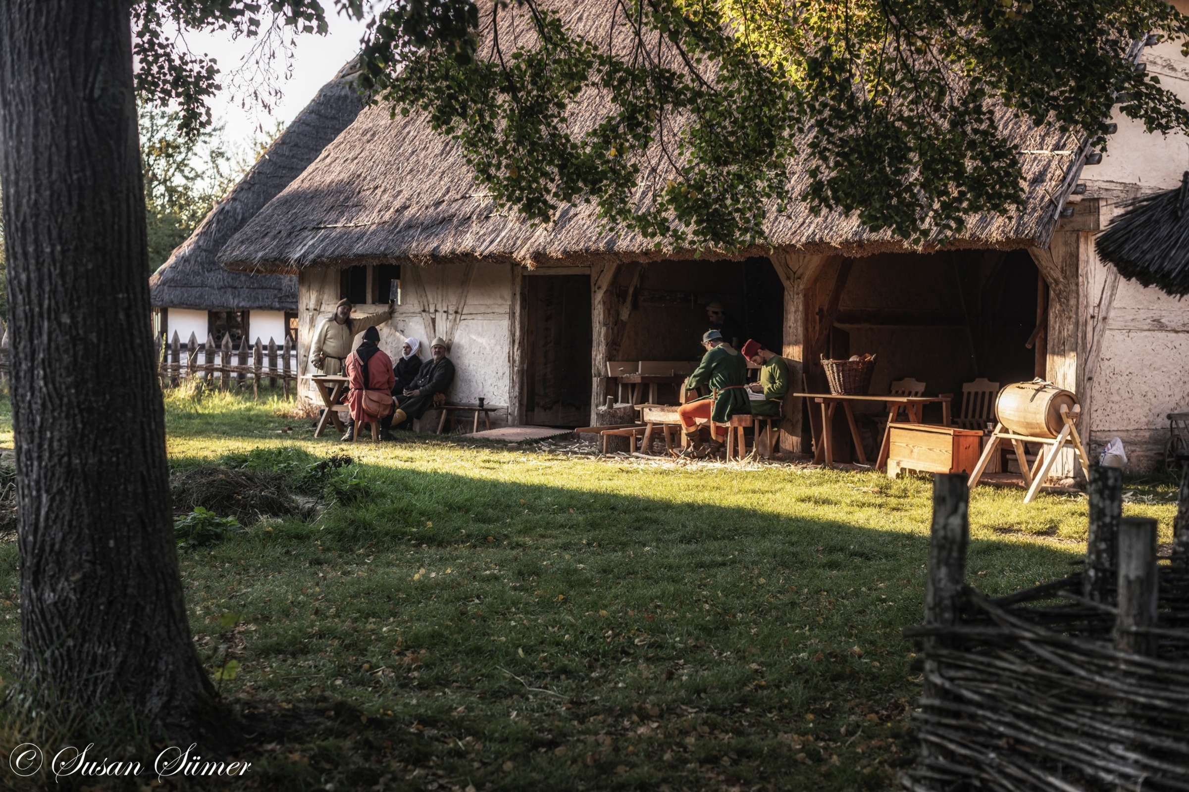 Obwohl wir so oft hier sind, ist das Wohnen in den Mittelalterhäusern des Museums noch immer etwas ganz Besonderes. Wir können die dargestellte Zeit wirklich erleben, denn alles drum herum ist stimmig. Die Erlaubnis, die Häuser wirklich zu benutzen und diese Möglichkeit zur Immersion, die uns das Museum gestattet, das ist die eigentliche "Bezahlung" für den ganzen Aufwand, den wir dafür so betreiben müssen (z.B. Anreise mit drei Pferden und zwei Karren mittels zwei Zugfahrzeugen/Anhängern; gefühlter Umzug einer Zweizimmerwohnung für eine Woche Aufenthalt, usw.)