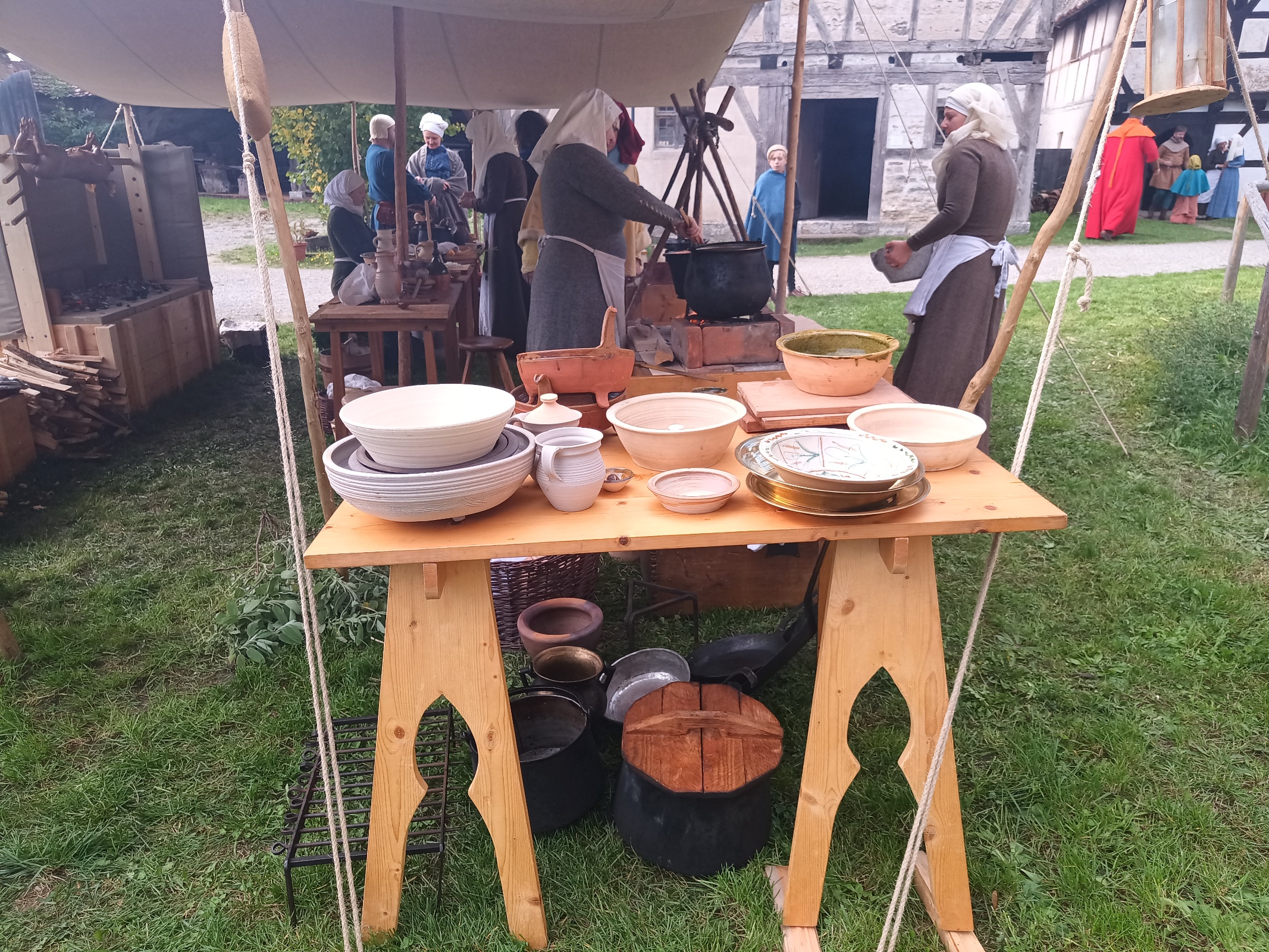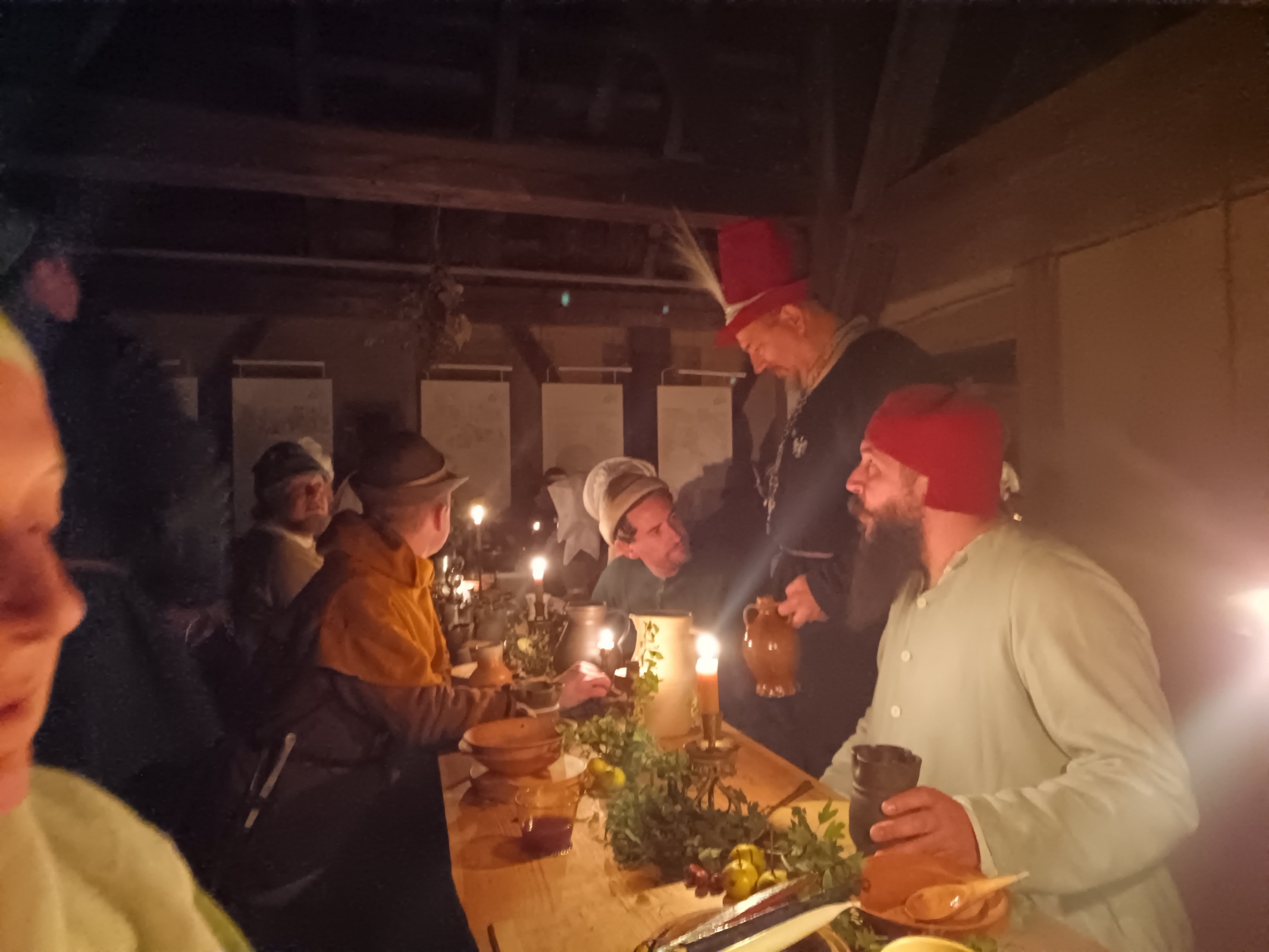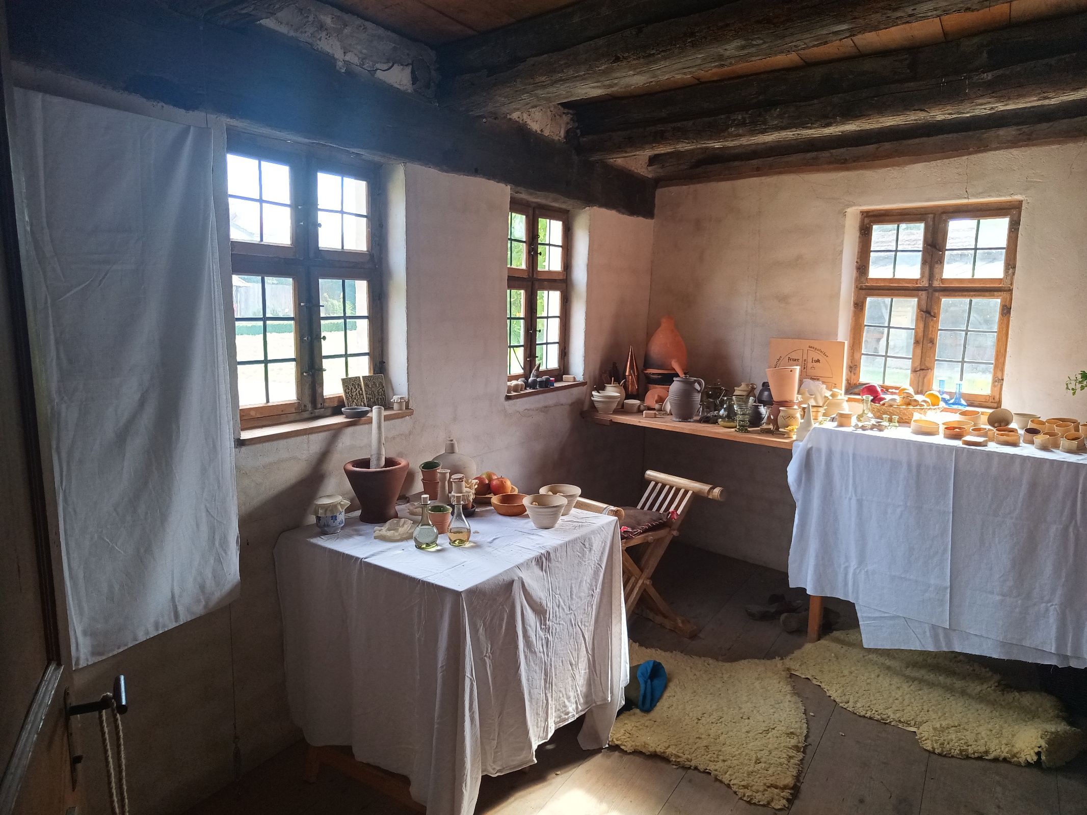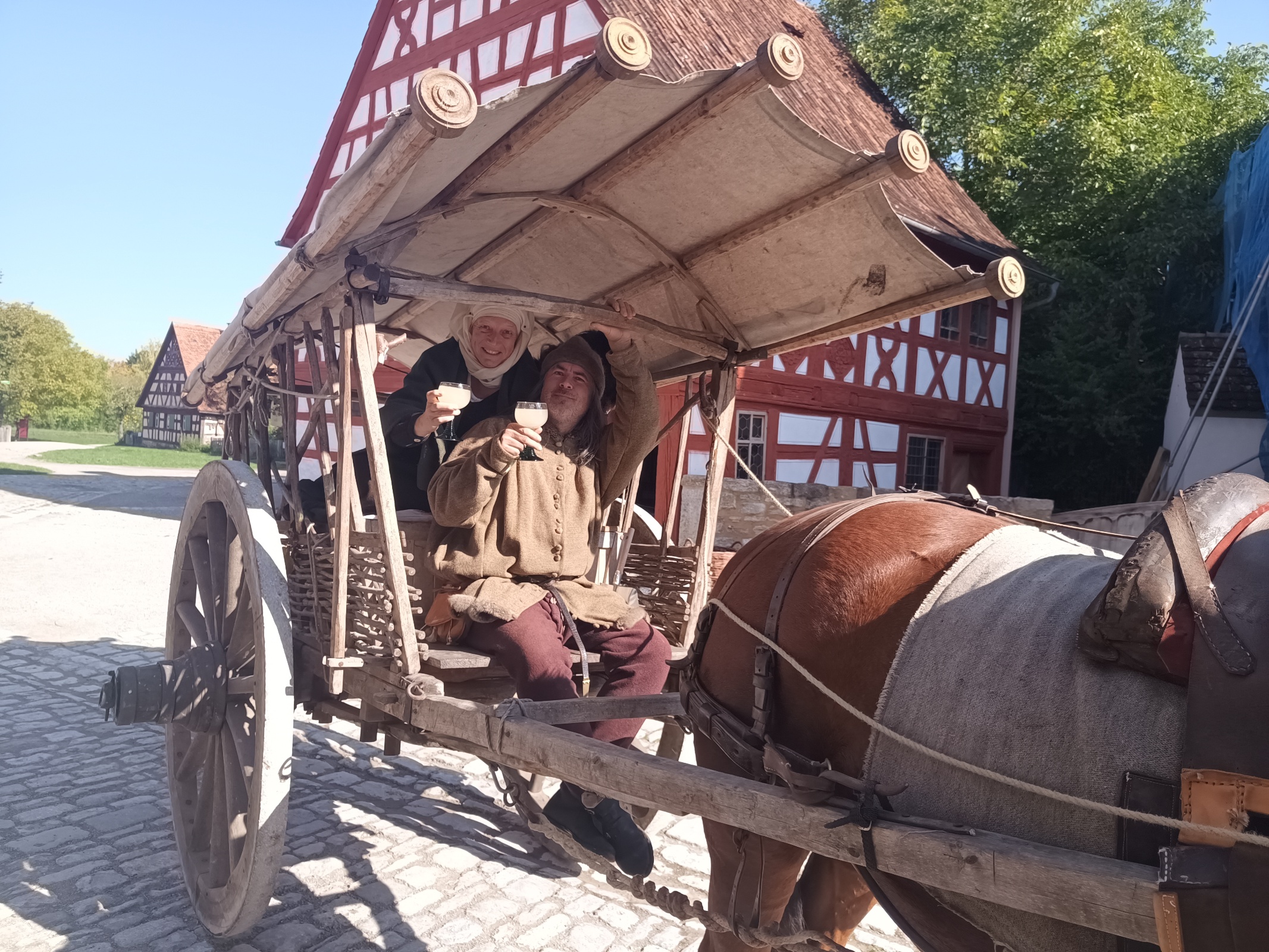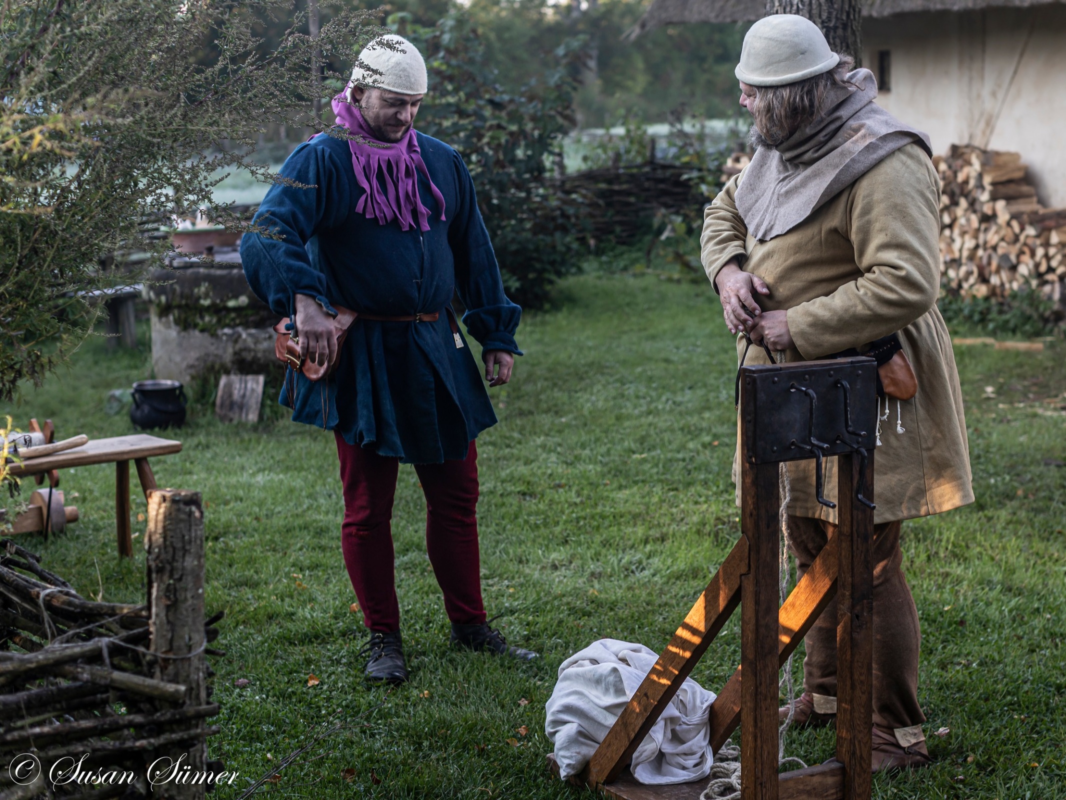 Obwohl wir so oft hier sind, ist das Wohnen in den Mittelalterhäusern des Museums noch immer etwas ganz Besonderes. Wir können die dargestellte Zeit wirklich erleben, denn alles drum herum ist stimmig. Die Erlaubnis, die Häuser wirklich zu benutzen und diese Möglichkeit zur Immersion, die uns das Museum gestattet, das ist die eigentliche "Bezahlung" für den ganzen Aufwand, den wir dafür so betreiben müssen (z.B. Anreise mit drei Pferden und zwei Karren mittels zwei Zugfahrzeugen/Anhängern; gefühlter Umzug einer Zweizimmerwohnung für eine Woche Aufenthalt, usw.)