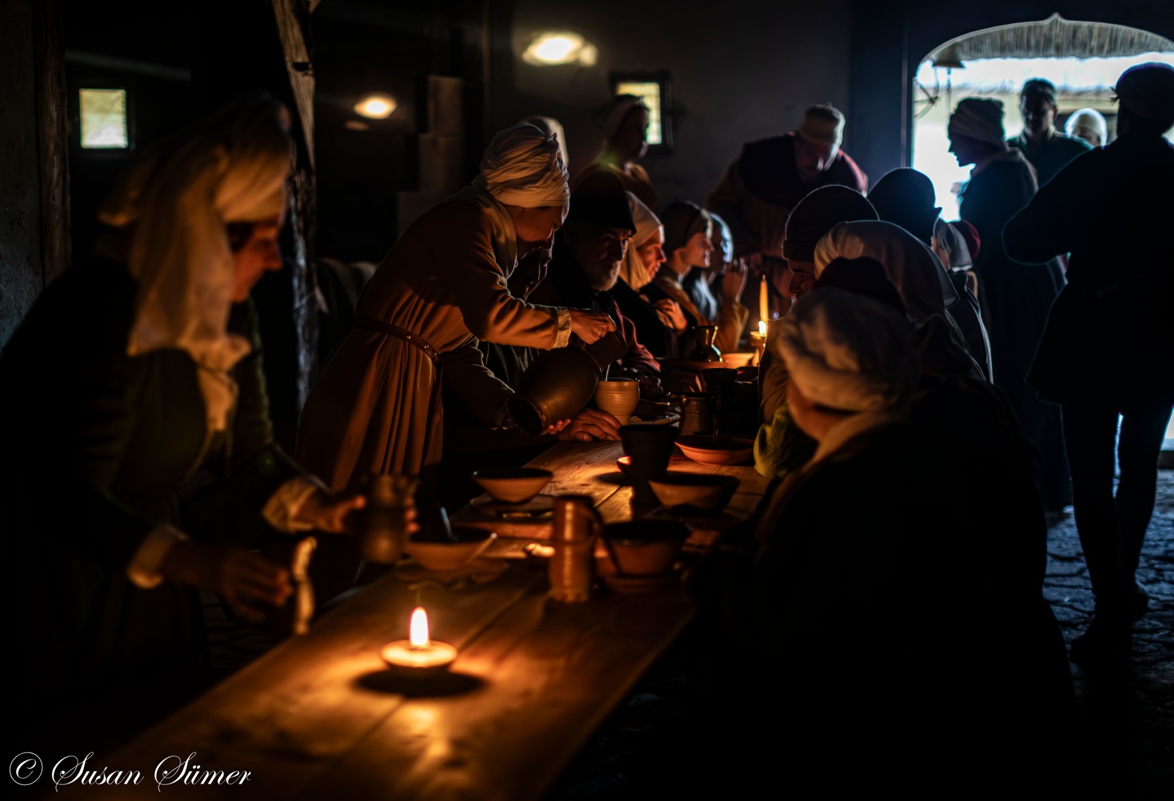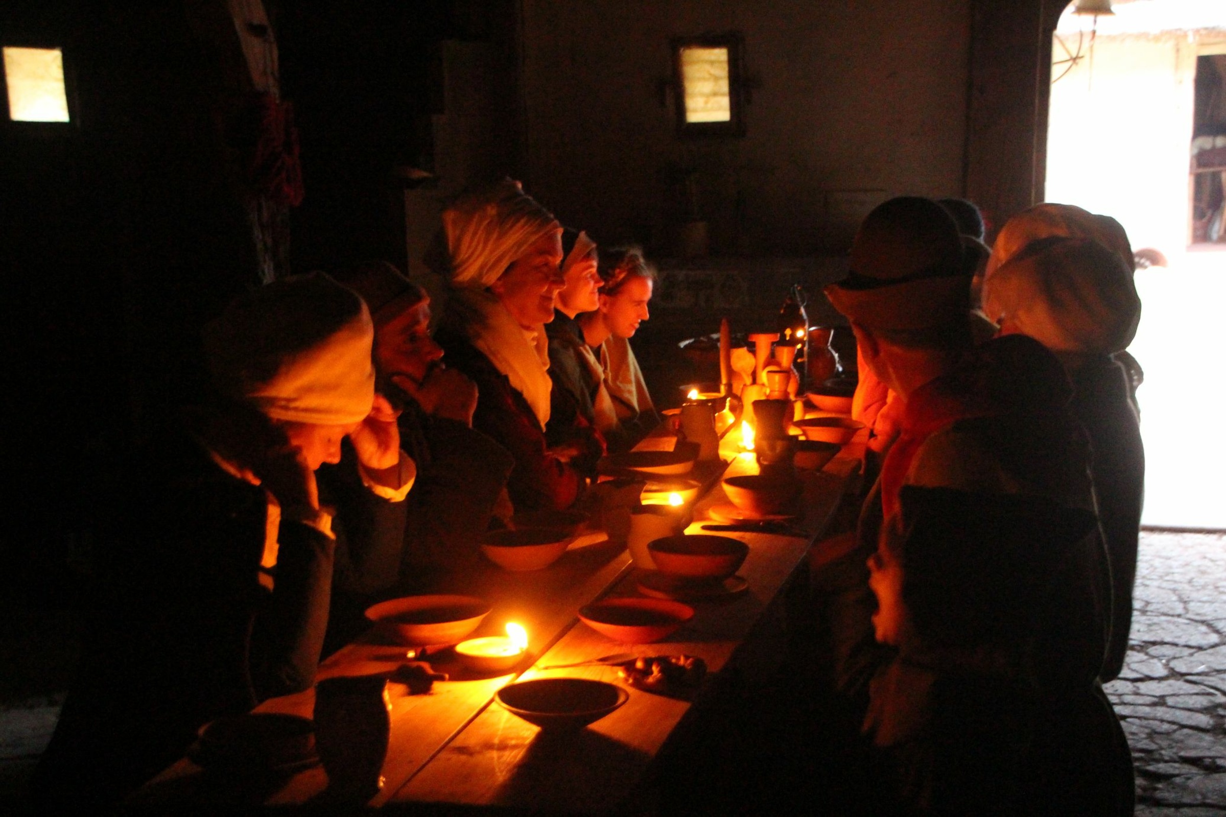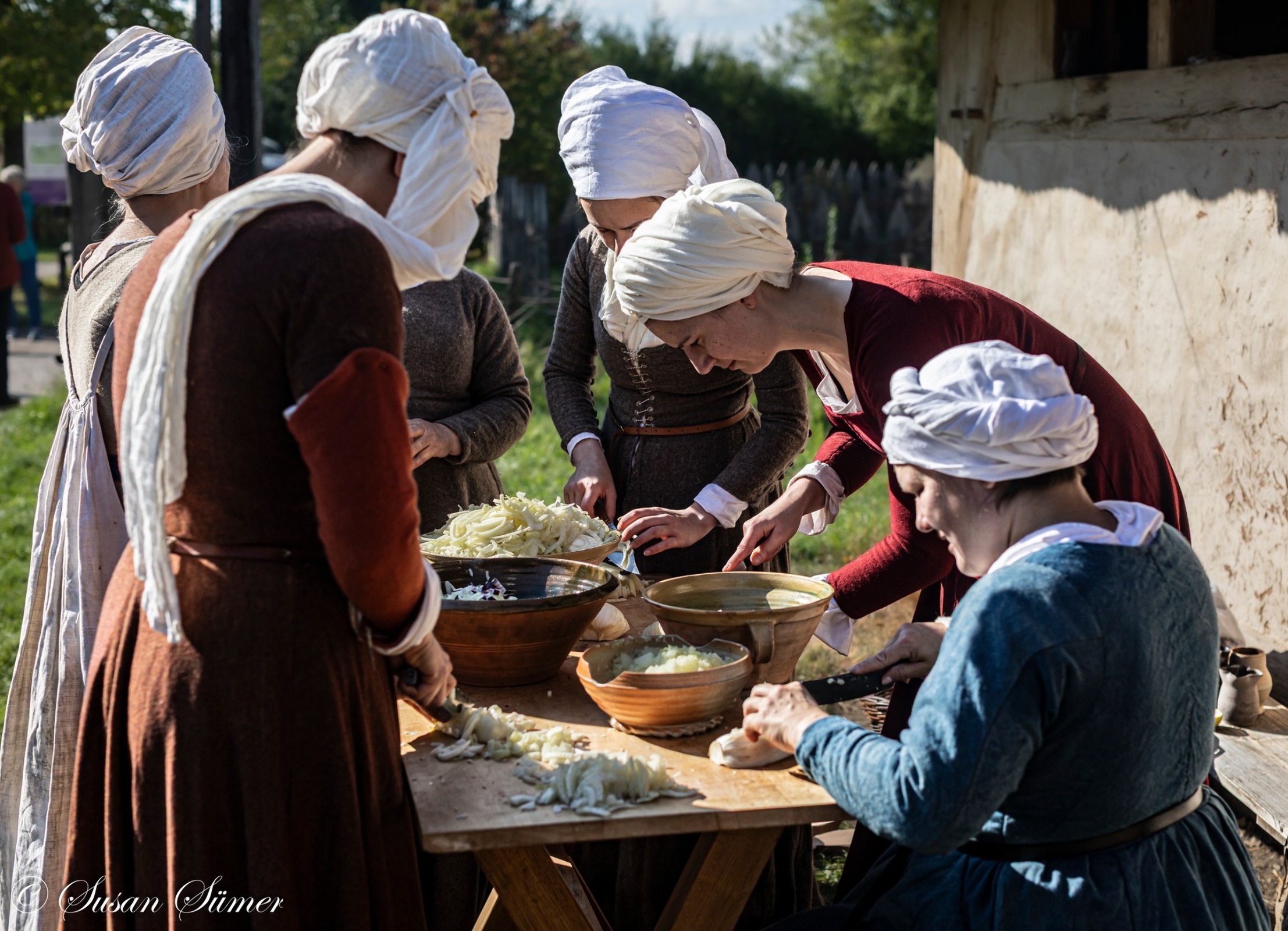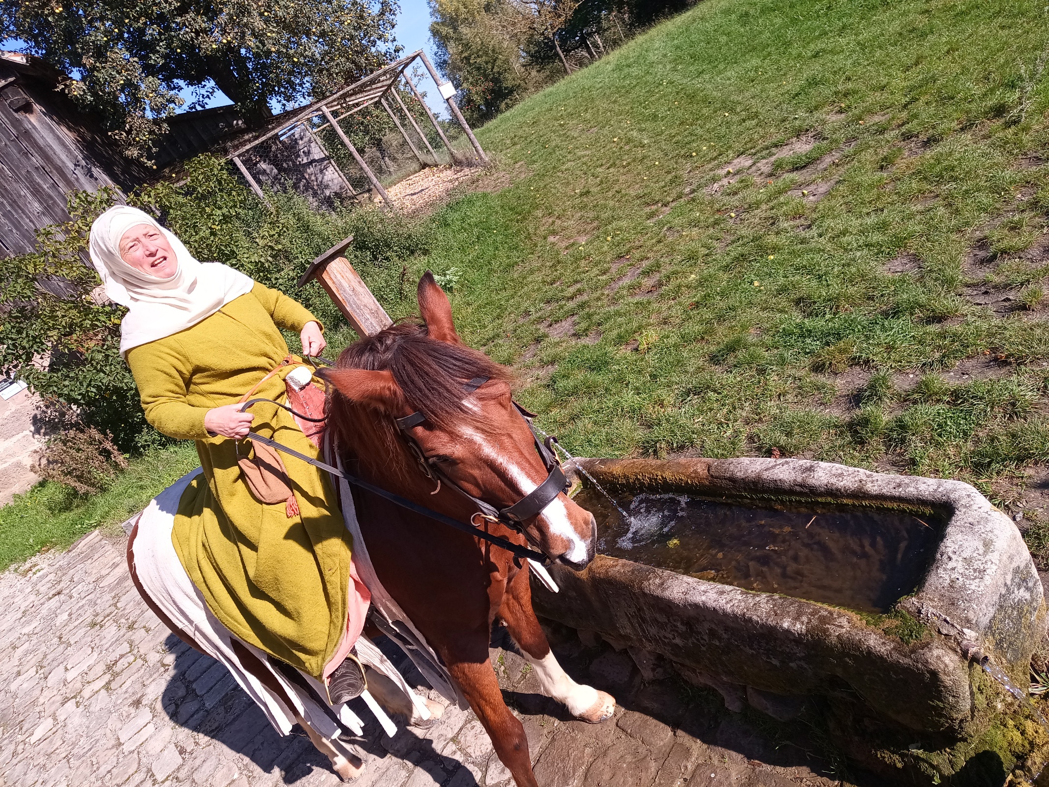 Obwohl wir so oft hier sind, ist das Wohnen in den Mittelalterhäusern des Museums noch immer etwas ganz Besonderes. Wir können die dargestellte Zeit wirklich erleben, denn alles drum herum ist stimmig. Die Erlaubnis, die Häuser wirklich zu benutzen und diese Möglichkeit zur Immersion, die uns das Museum gestattet, das ist die eigentliche "Bezahlung" für den ganzen Aufwand, den wir dafür so betreiben müssen (z.B. Anreise mit drei Pferden und zwei Karren mittels zwei Zugfahrzeugen/Anhängern; gefühlter Umzug einer Zweizimmerwohnung für eine Woche Aufenthalt, usw.)