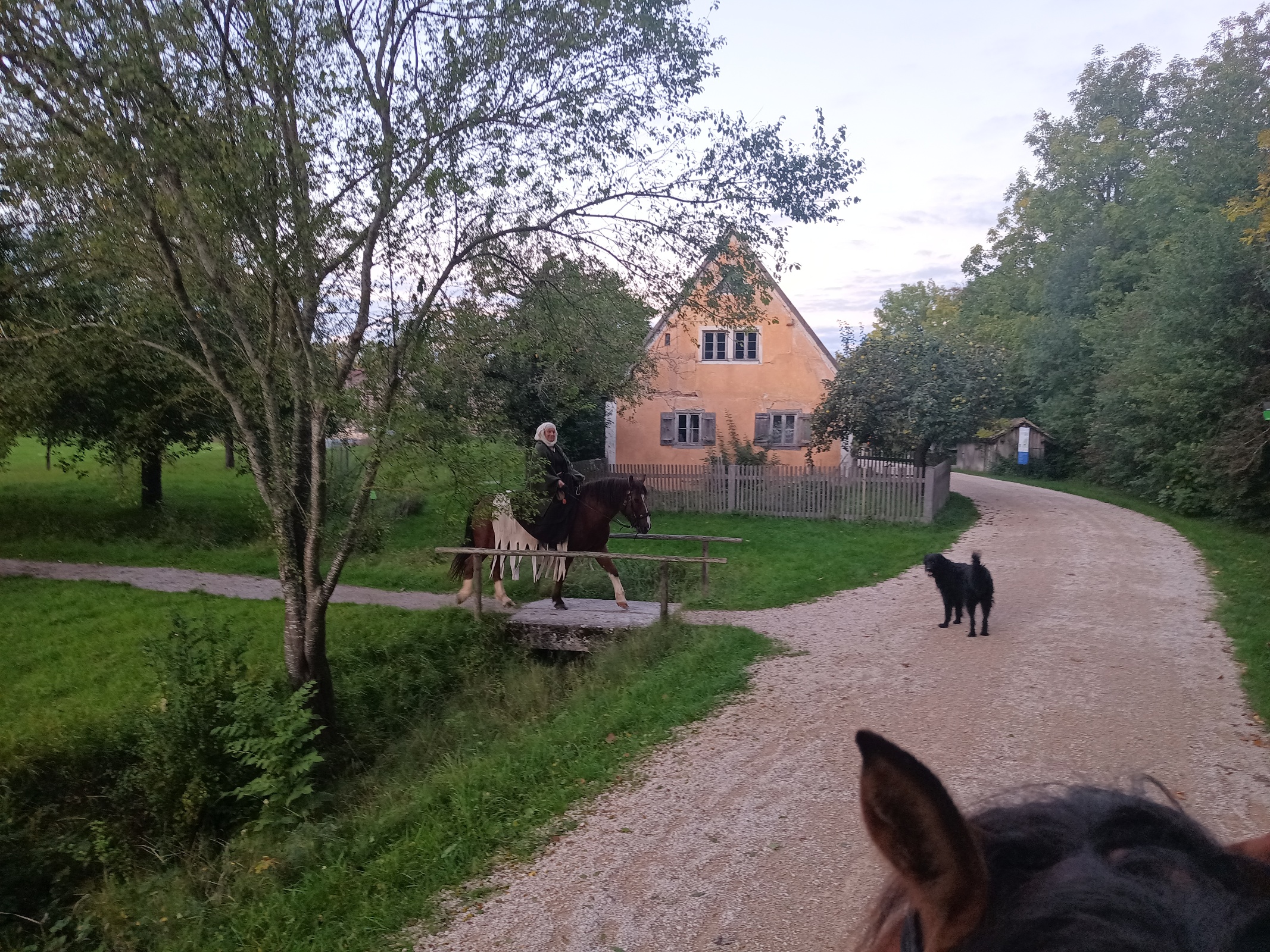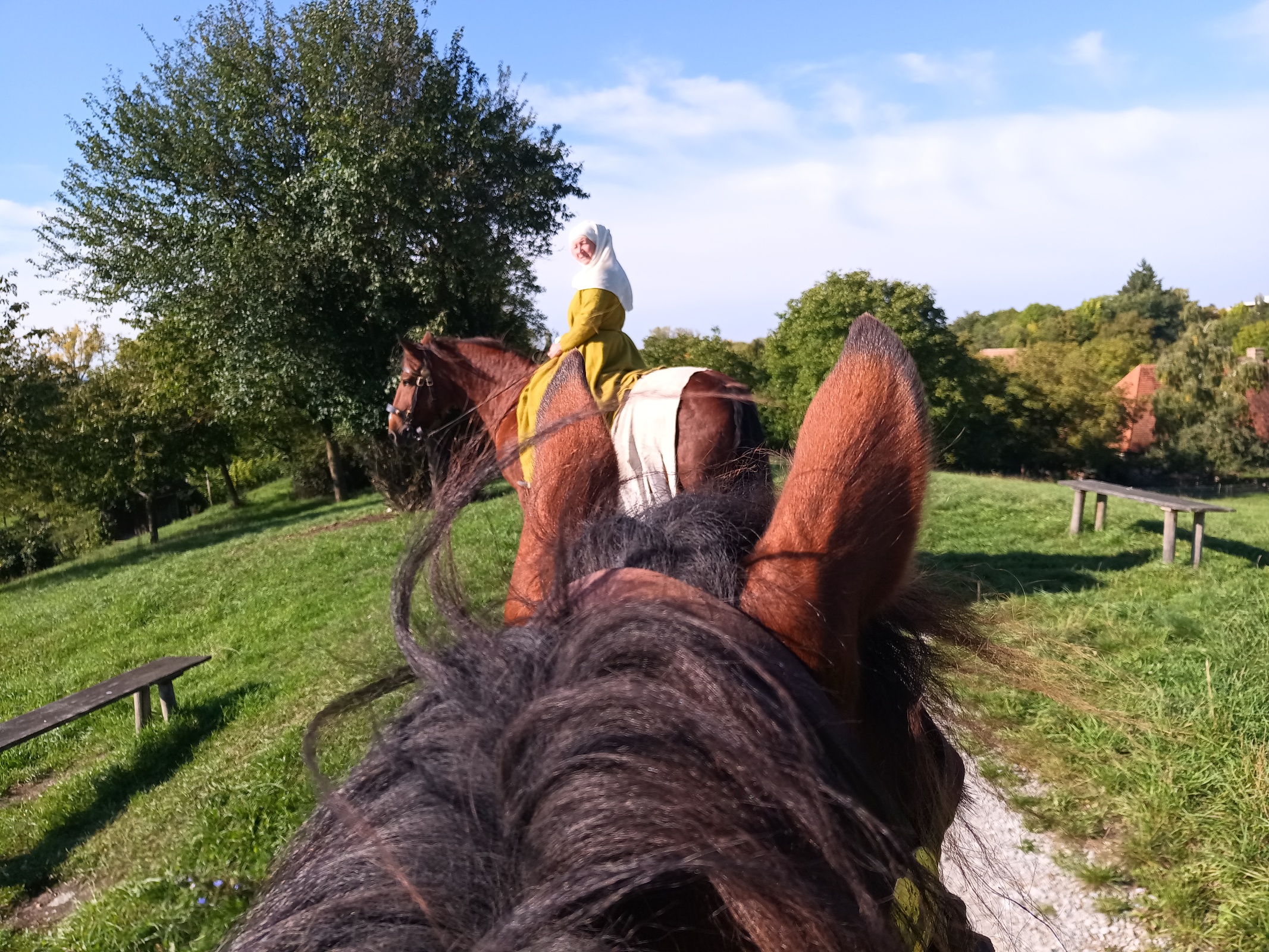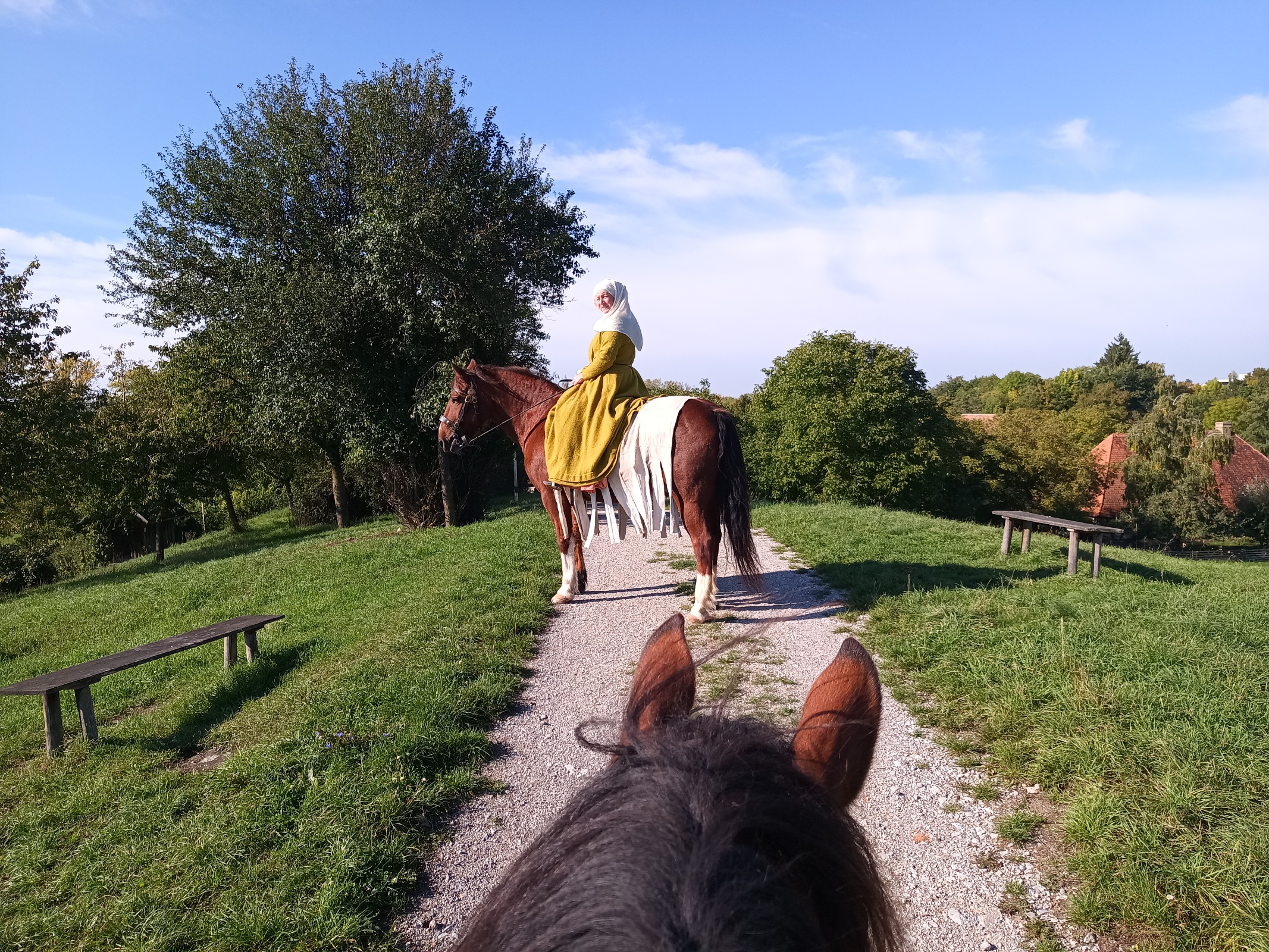 Das weitläufige Freilandmuseum bietet uns ein abwechslungsreiches Gelände, um mit den Pferden zu "spielen".