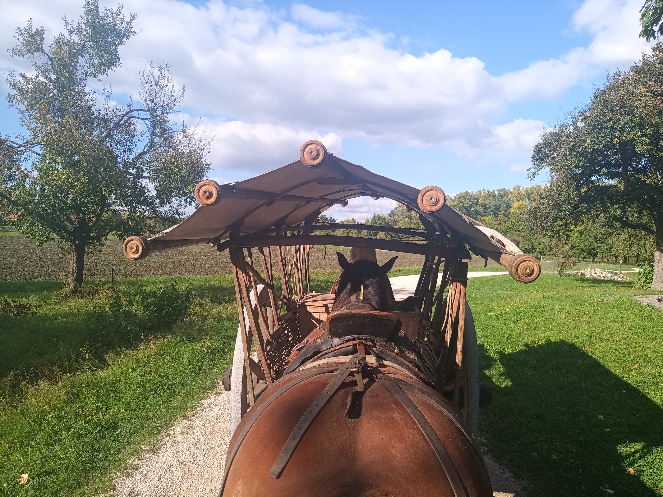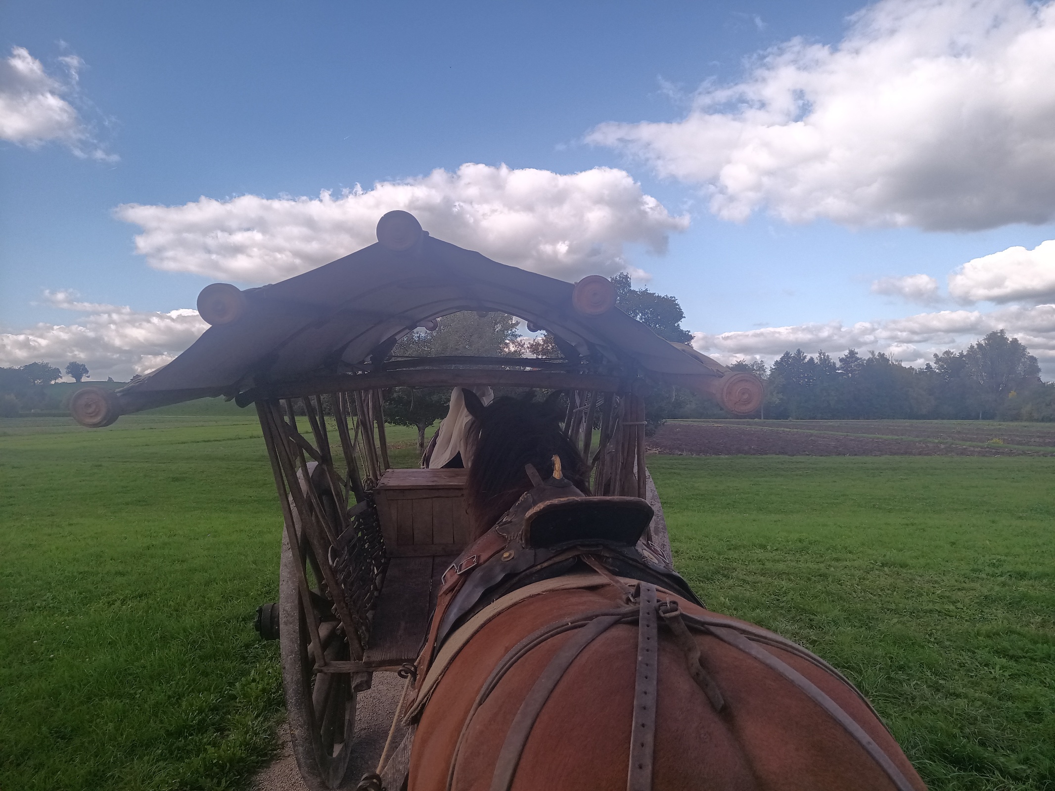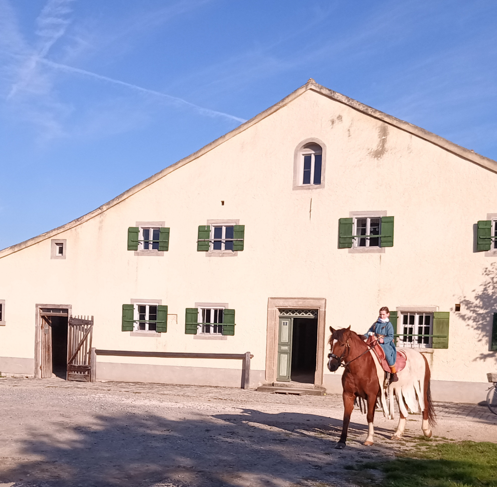 Das weitläufige Freilandmuseum bietet uns ein abwechslungsreiches Gelände, um mit den Pferden zu "spielen".
