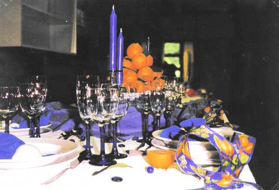einen Zitronenkuchen oder -creme zubereiten. Halbierte Zitronen mit 1 Lorbeerblatt (Name mit Goldstift daraufschreiben) kann man als Tischkarte aufstellen. Die