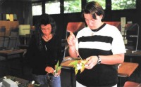 Tanja und Petra treffen Vorbereitungen für den Kaffeetisch zum Muttertag.